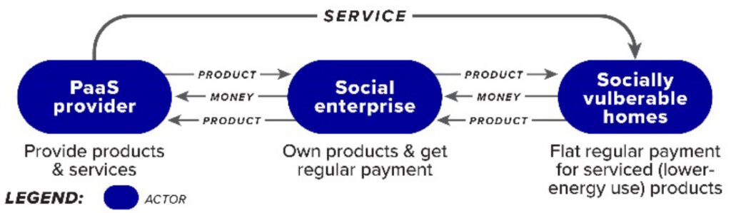 The case study results will first explain the PaaS offering that BSH practices in Belgium since 2018, under the name of Papillon, targeting families living in poverty that cannot afford to purchase energy-efficient home appliance. BSH established a partnership with a social enterprise whose mission is to help socially vulnerable people. This constellation enables the end users to use energy-efficient home appliance leading to lower energy bills through rental contracts with affordable monthly flat payment; see Fig. 1. The rental contracts run for a period of 10 years with a monthly rental fee of about 9 € per device.